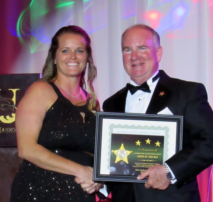 In addition to dinner and entertainment, the evening’s program featured award presentations for the 2019 Law Enforcement Deputy of the Year Sgt. Jon Reckenwald, Detention Deputy of the Year Deputy William Kennedy, Civilian Employee of the Year Ashlie Hicks, Volunteer of the Year Chaplain Juan Schembri, and Citizens of the Year Chris Parks and Chalyn Parks, by Flagler Sheriff Rick Staly.